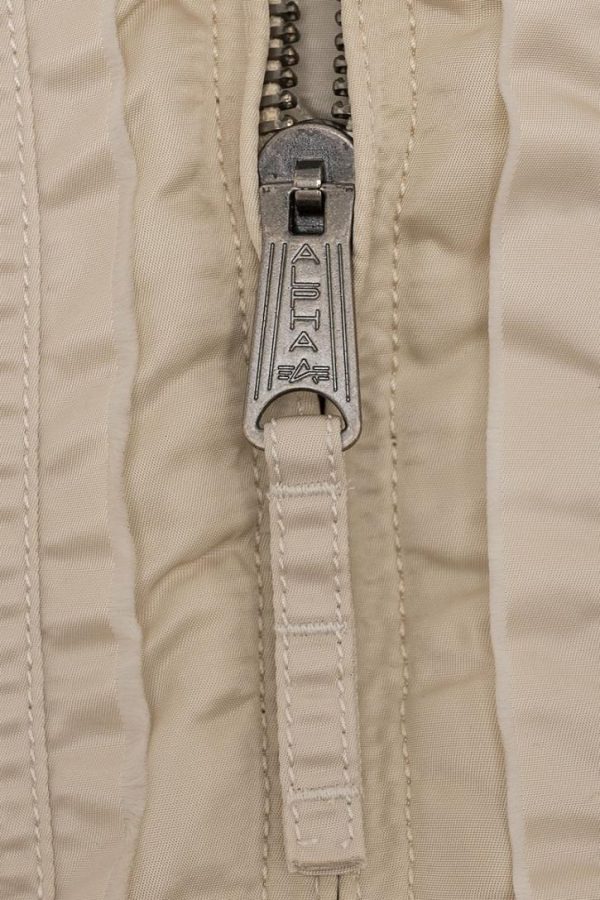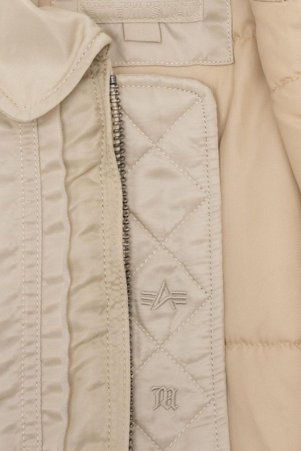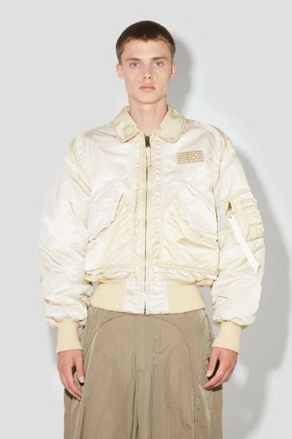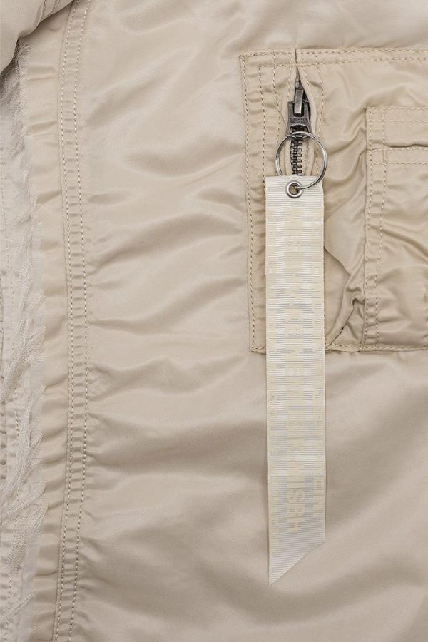 Patchwork nylon bomber jacket in shades of beige. MISBHV X Alpha Industries x KEINEMUSIK collaboration.