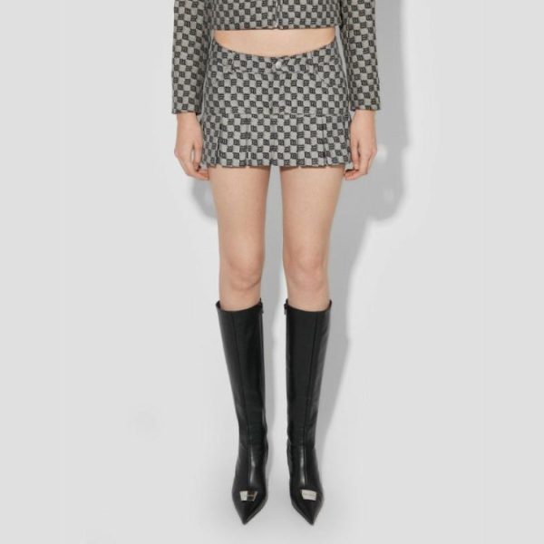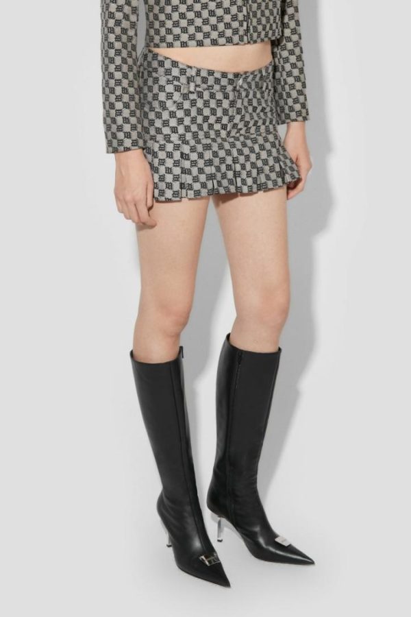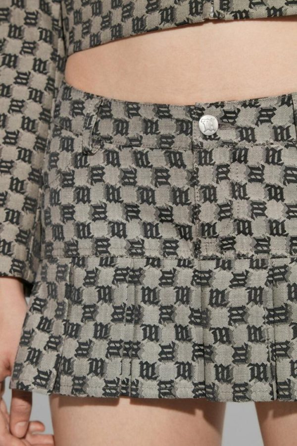 Canvas mini skirt in grey. Jacquard monogram pattern throughout.