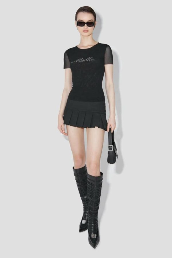 Short skirt in black. Pleats throughout. Concealed zip closure. Fully lined.