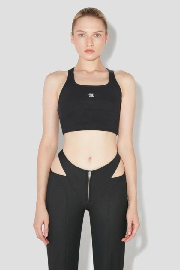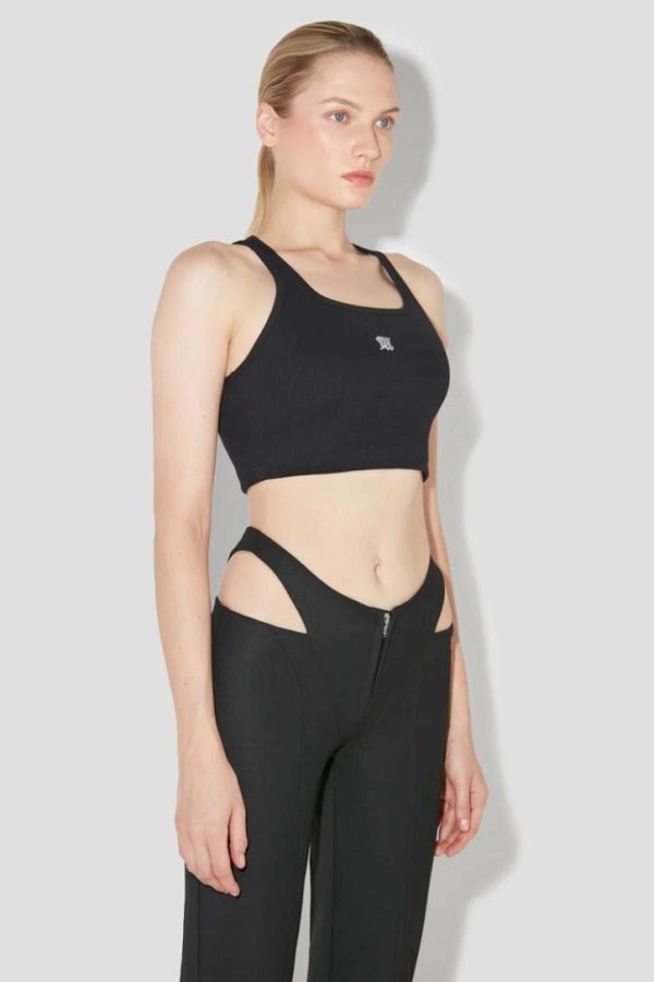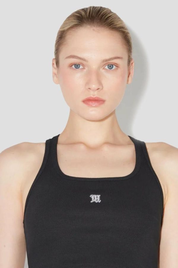Black, stretch cotton jersey Tank top.