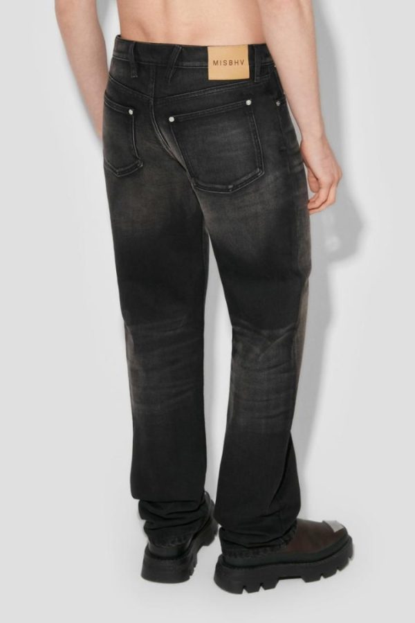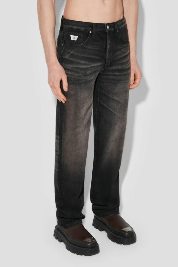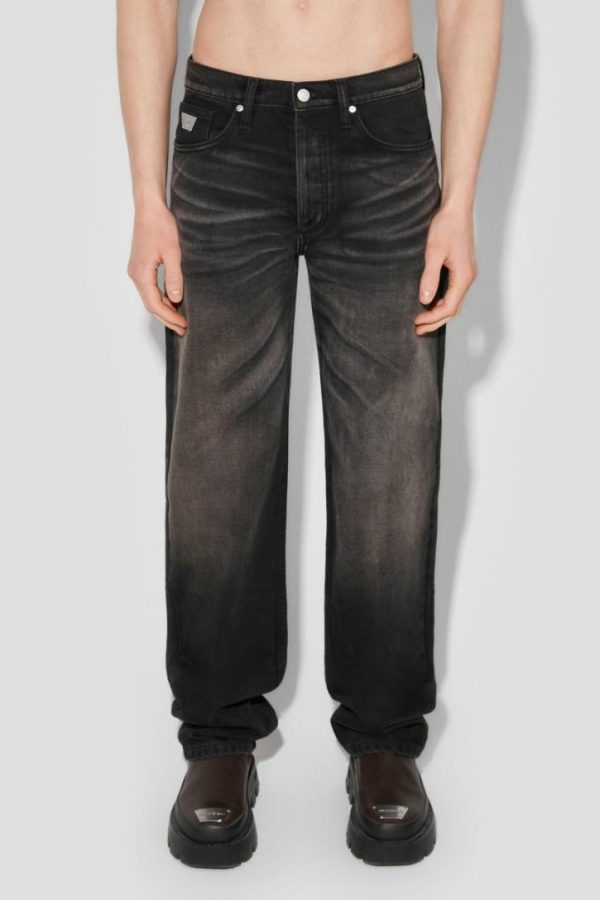 | Denim trousers in black. Fading throughout. •Loose-fit •Five pocket styling •Button closure •Silver-tone hardware Color: Black Composition: 70% cotton, 30% recycled cotton. Product features a unique wash – each piece may differ from the one presented on the site. Aleksander is 189cm tall and wears size 32 |